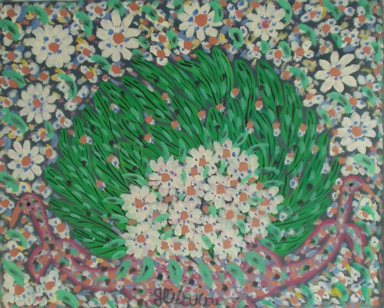 Title: Fleurs Blanches with Birds
