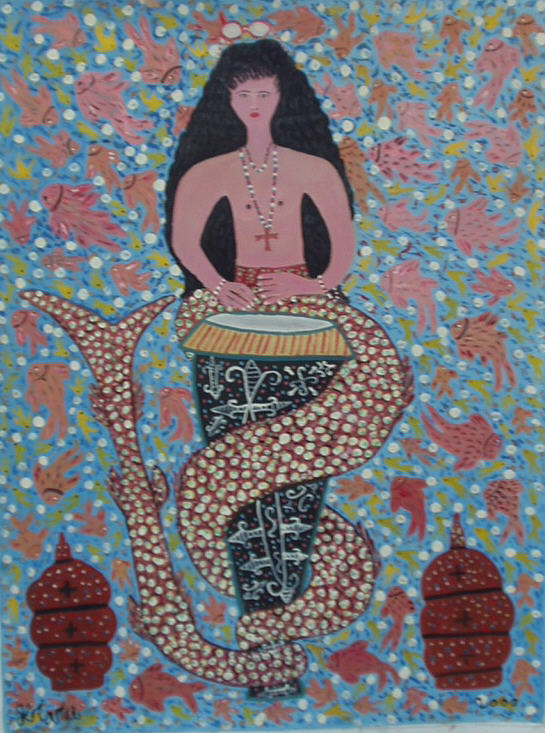 Title: Mermaid Playing Black Drum